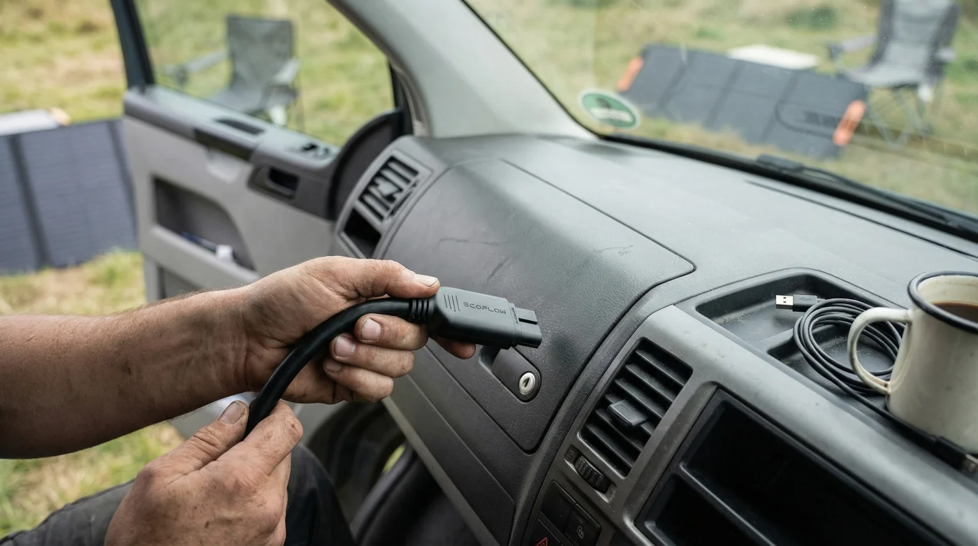 Der eigentliche Star dieser rasant wachsenden Bewegung ist jedoch nicht nur das faltbare Modul an sich, sondern eine kleine, technologische Meisterleistung im Bereich der Verbindungstechnik. Hier rückt insbesondere der sogenannte “Ecoflow-Adapter” sowie vergleichbare Schnittstellen in den absoluten Fokus der Vanlife-Community. Dieser intelligente Zwischenstecker ermöglicht es, die von den faltbaren Solarmodulen generierte Energie extrem verlustarm, direkt und ohne die Notwendigkeit komplizierter Laderegler-Verkabelungen in das bestehende 12V-System des Fahrzeugs einzuspeisen. Bisher war die Einbindung externer Module oft ein gefährliches Bastel-Abenteuer mit blanken Kabeln und riskanten Sicherungen. Mit den modernen Adaptern wird die Solarenergie via standardisiertem XT60- oder MC4-Stecker schlichtweg per Klick in den Kreislauf oder die tragbare Powerstation transferiert.