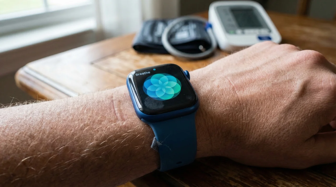 Die Evolution der Apple Watch hat längst die Schwelle von reiner Beobachtung zu aktiver Intervention überschritten. Lange Zeit dachte man, die alleinige Visualisierung einer erhöhten Herzfrequenz von beispielsweise über 100 Schlägen pro Minute würde ausreichen, um Menschen zu einer Verhaltensänderung zu bewegen. Studien belegen jedoch, dass bloße Daten ohne direkten Handlungsansatz oft nur noch mehr Stress auslösen. Wenn der Blutdruckmesser 140/90 mmHg anzeigt, entsteht Panik, die den Wert paradoxerweise weiter in die Höhe treibt. Genau hier setzt die intelligente Software an, indem sie vom Beobachter zum interaktiven Therapeuten wird. Anstatt Sie mit schlechten Werten alleine zu lassen, zwingt das System durch sanfte, physische Impulse Ihren Atemapparat in eine Frequenz, die rein biologisch keine Panik mehr zulässt.